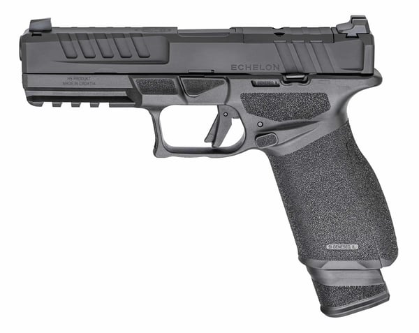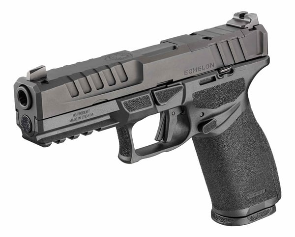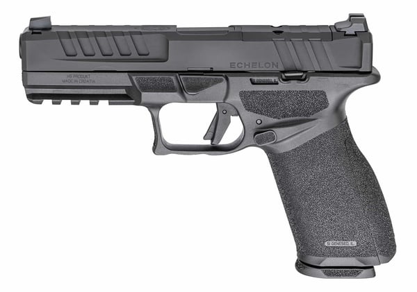 Engineered with superior ergonomics and built to withstand the harshest conditions, the Echelon™ 4.5" 9mm handgun sets a new standard for modern, striker-fired duty pistols. With a host of patent pending features, this modular pistol is designed around a robust stainless steel chassis. In addition, a revolutionary optics mounting system allows for unparalleled adaptability with a broad range of optics. Fully ambidextrous, the Echelon features a U-Dot sight system for fast target acquisition and includes two magazines.